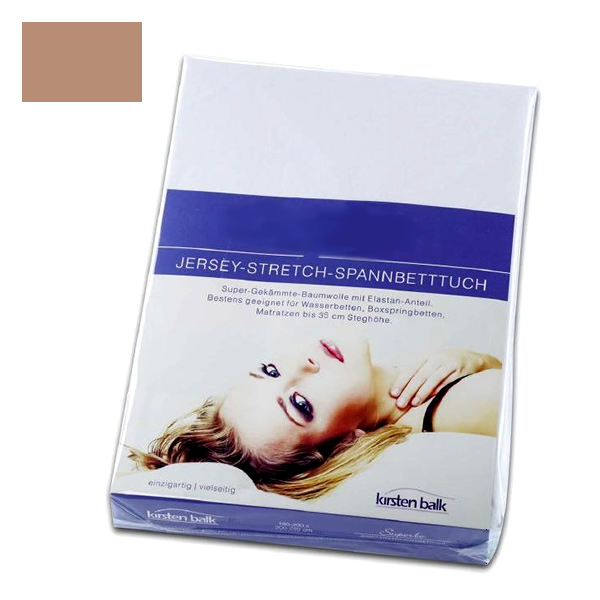 Jersey Spannbetttuch für Boxspringbetten aus 97% gekämmter Baumwolle mit 3% Elasten. Das feinste, super gekämmte Baumwollgarn mit Elastan kombiniert garantieren beste Stretch-Eigenschaften. Das sehr feine Strickbild, die perfekte Passform der weiche und edle Griff, sowie der faltenfreie Sitz machen dieses Spannbetttuch zum Erfolgs-Produkt mit langer Lebensdauer.