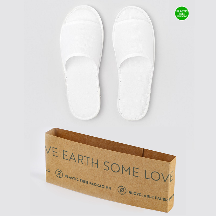 Hotelslipper aus Vliese in umweltfreundlicher Papierbanderole