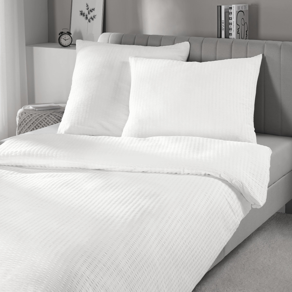 Bügelfreie Seersucker Bettwäsche mit Hotelverschluss in weiss